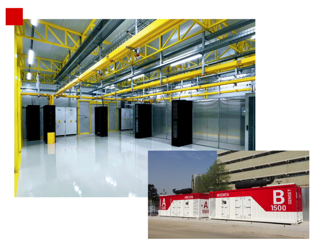 Supravegheate în regim 24×7, centrele de date NXDATA sunt echipate la cele mai înalte standarde cu sisteme de distribuție a energiei electrice, surse de alimentare neîntreruptibile, echipamente de climatizare, sisteme de detecție și prevenire a incendiilor, generatoare Diesel de rezervă și multiple conexiuni către cei mai importanți furnizori de servicii de telecomunicații.